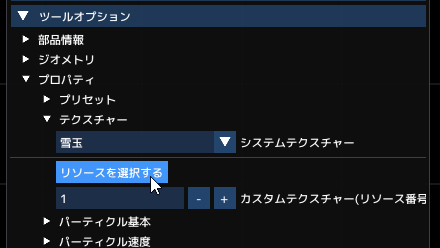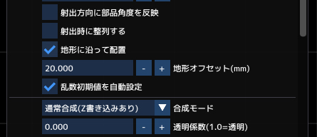プラットホーム上に配置する作例です。これまでと同様にエミッターを設定後、一部を下記のように設定します。
