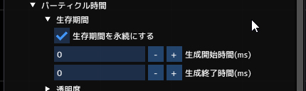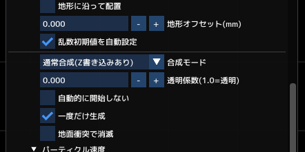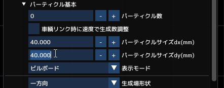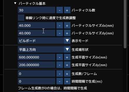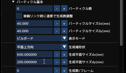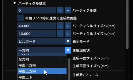 現在のバージョンは、パーティクルの処理速度を優先しているため、生成場は「回転」しません。