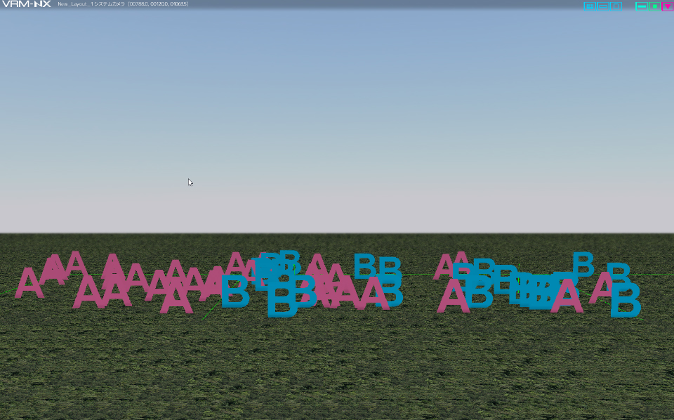 パーティクルサイズは、14mmに設定。画像の上のほうが透明になっているので、表示される画像は、おおよそ人間の身長程度になります。