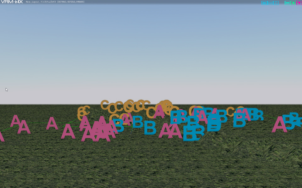 TIPS, VRMNX エミッターで森、群衆をつくる3 2025年10月8日 imagicdev エミッターを追加 3つ目の画像を表示するエミッターをCTRL+Dで複製、生成します。 テクスチャーは、「3」を選択しました。 3種類の画像がランダムに表示されます。 地形 石膏ブラシで適当に地面を盛り上げます。 ビュワーで表示すると、盛り上げた地面にあわせて、画像が表示されます。