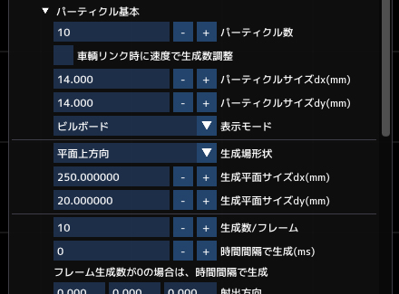 現在のバージョンは、パーティクルの処理速度を優先しているため、生成場は「回転」しません。