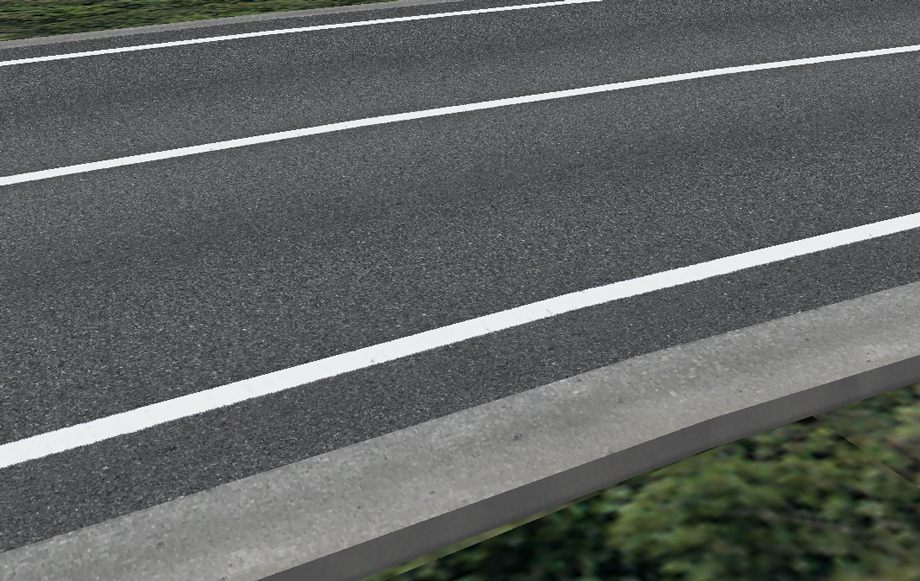 近くでみるとアスファルトの質感が感じられる高解像度テクスチャーを採用しました。(処理速度を維持できるぎりぎりの精密さになっています。)