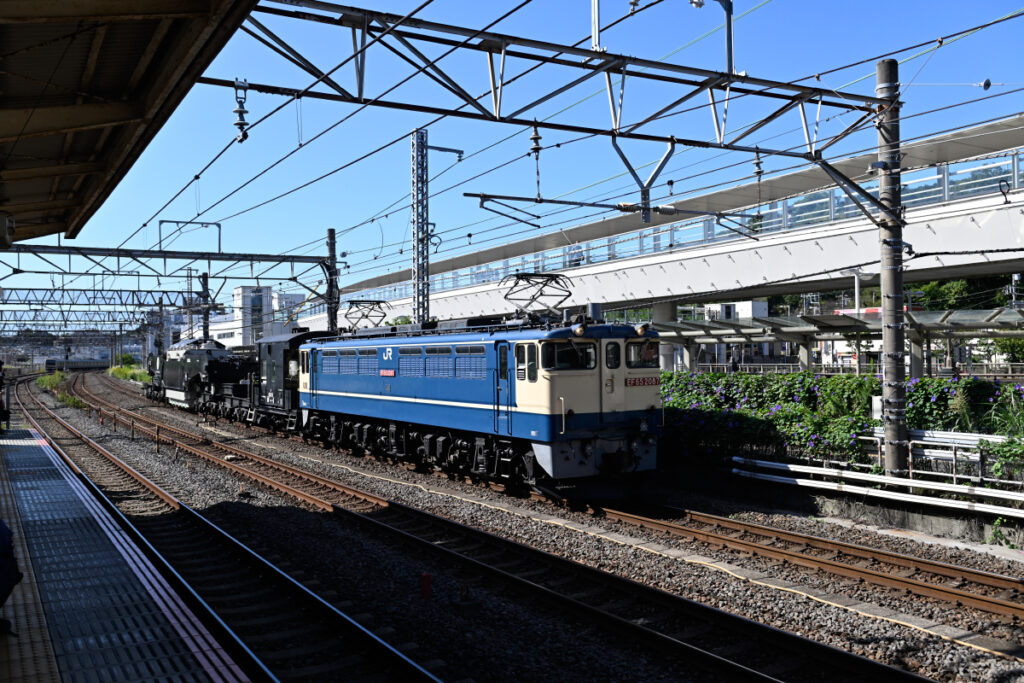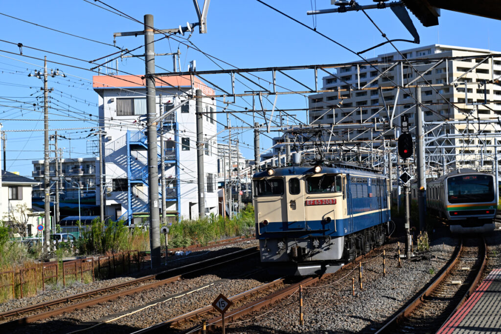 機関車をリレーして、目的地に向かいます。今回は、EF65 2087でした。相模貨物駅に到着した特大を迎えに行きます。